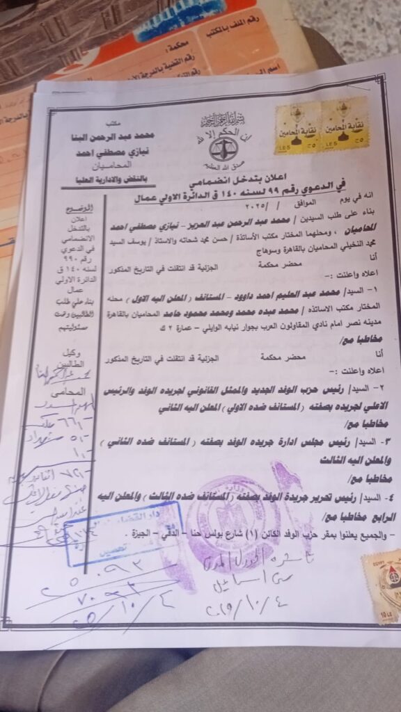 تطور جديد في دعوى “داوود” ضد رئيس الوفد أمام الاستئناف